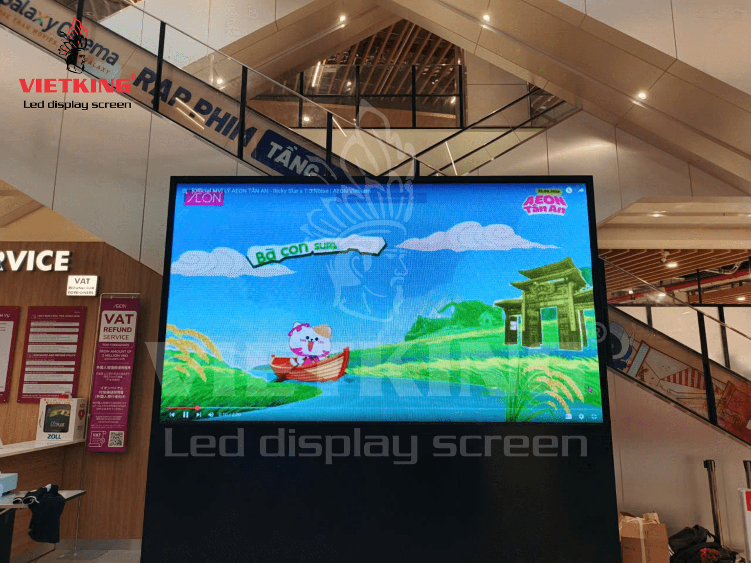 Màn hình LED P4 được lắp đặt tại khu vực sảnh trung tâm, nơi tập trung lượng khách hàng lớn nhất của AEON.